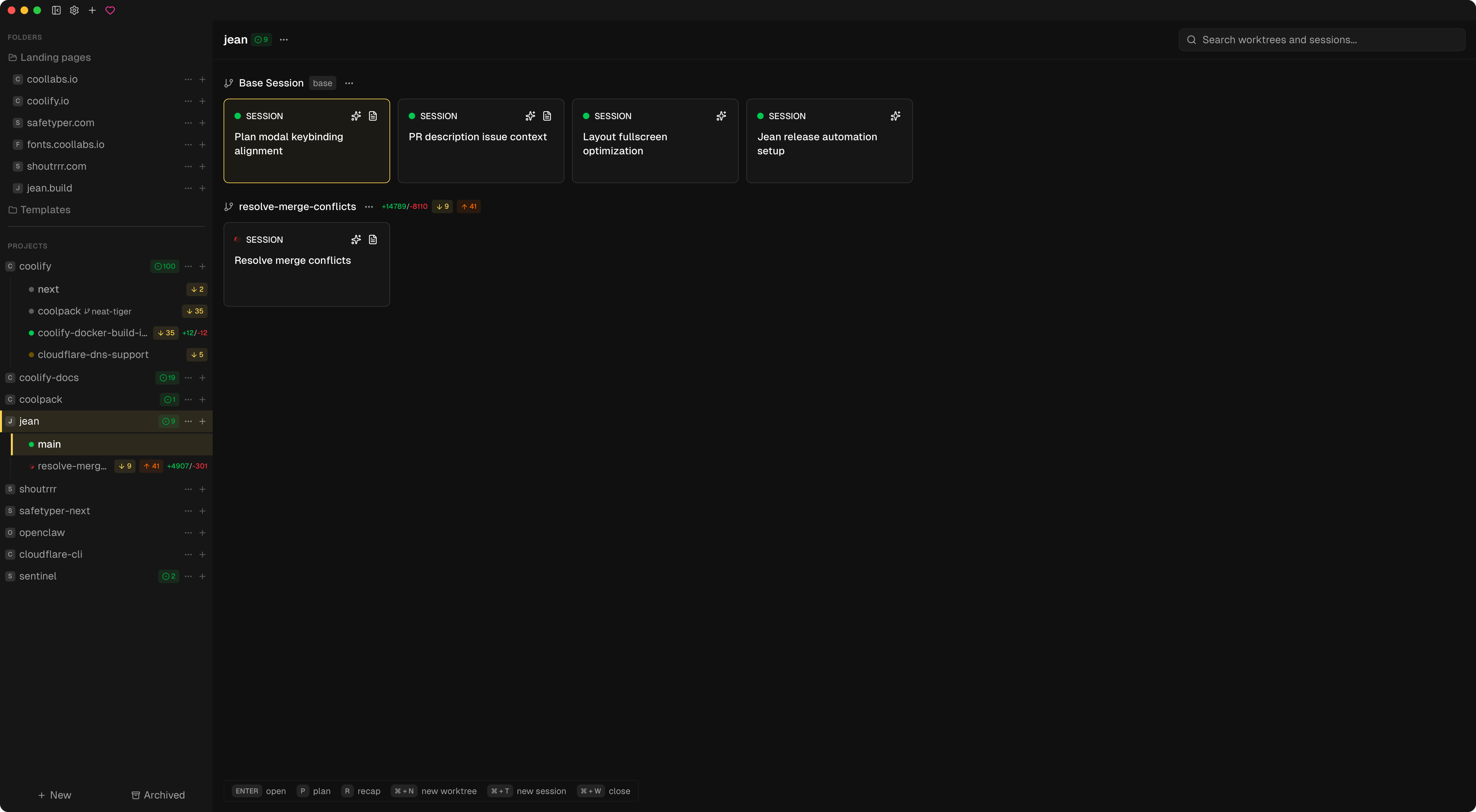 Run AI agents in parallel, in isolated workspaces. Automated worktree management, context loading from GitHub, magic git commands, and more. Open source and free forever.