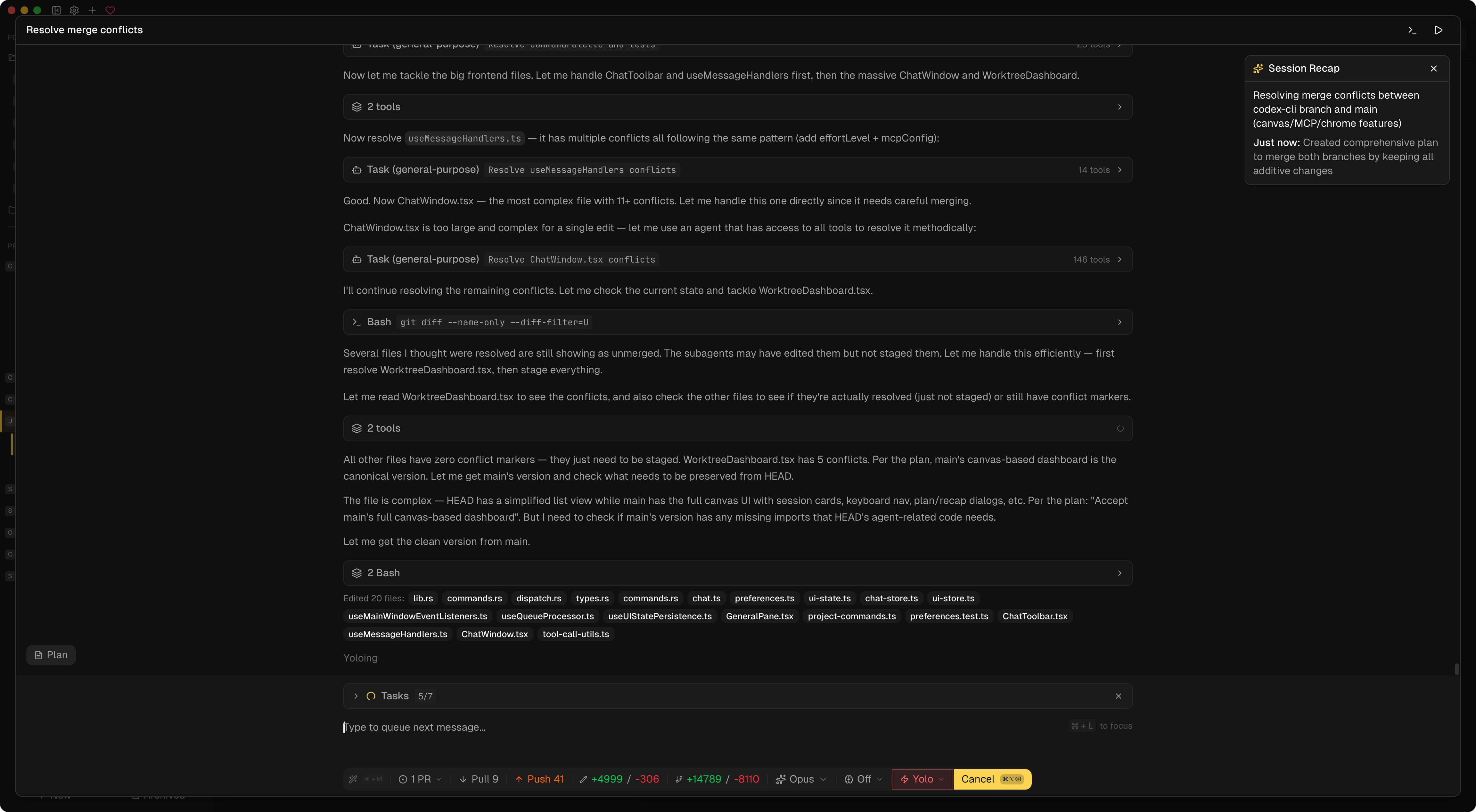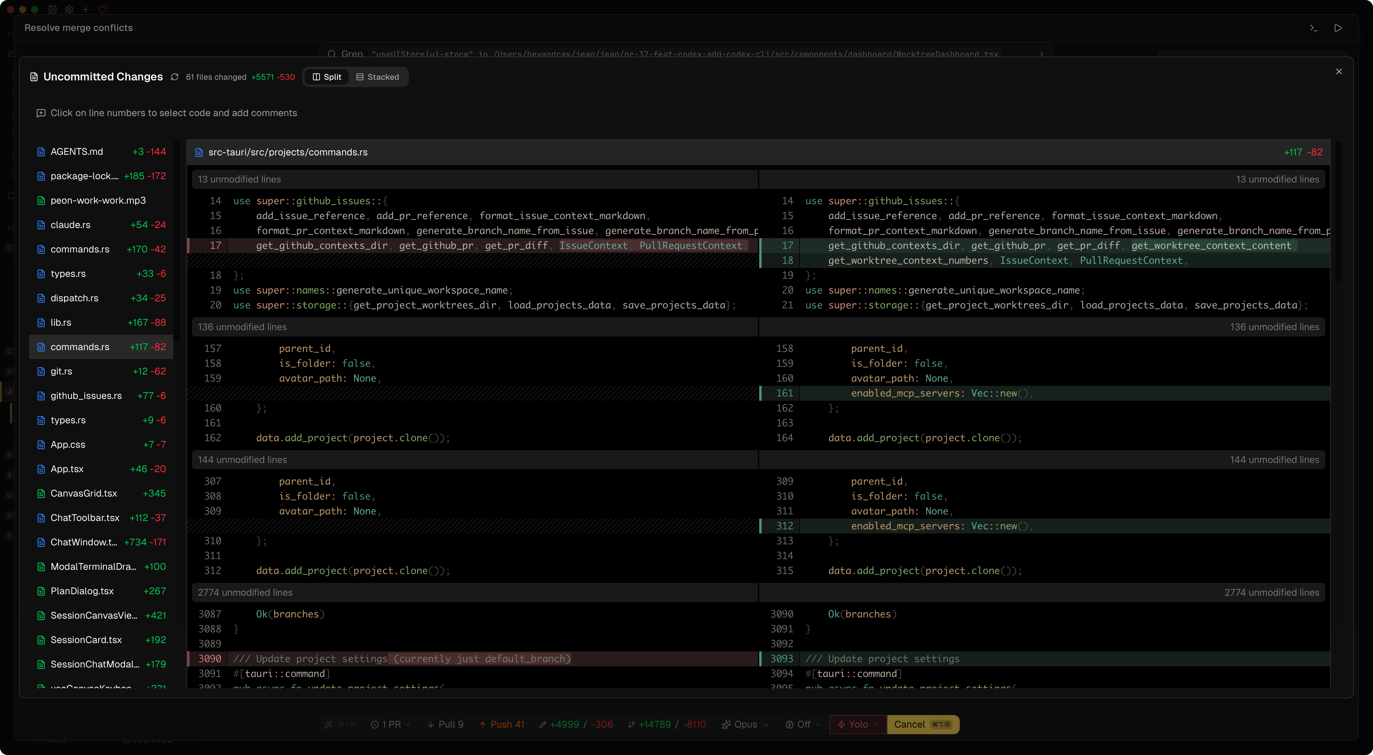 Merge GitHub PRs or local worktrees automatically. Built-in merge conflict resolution powered by AI.